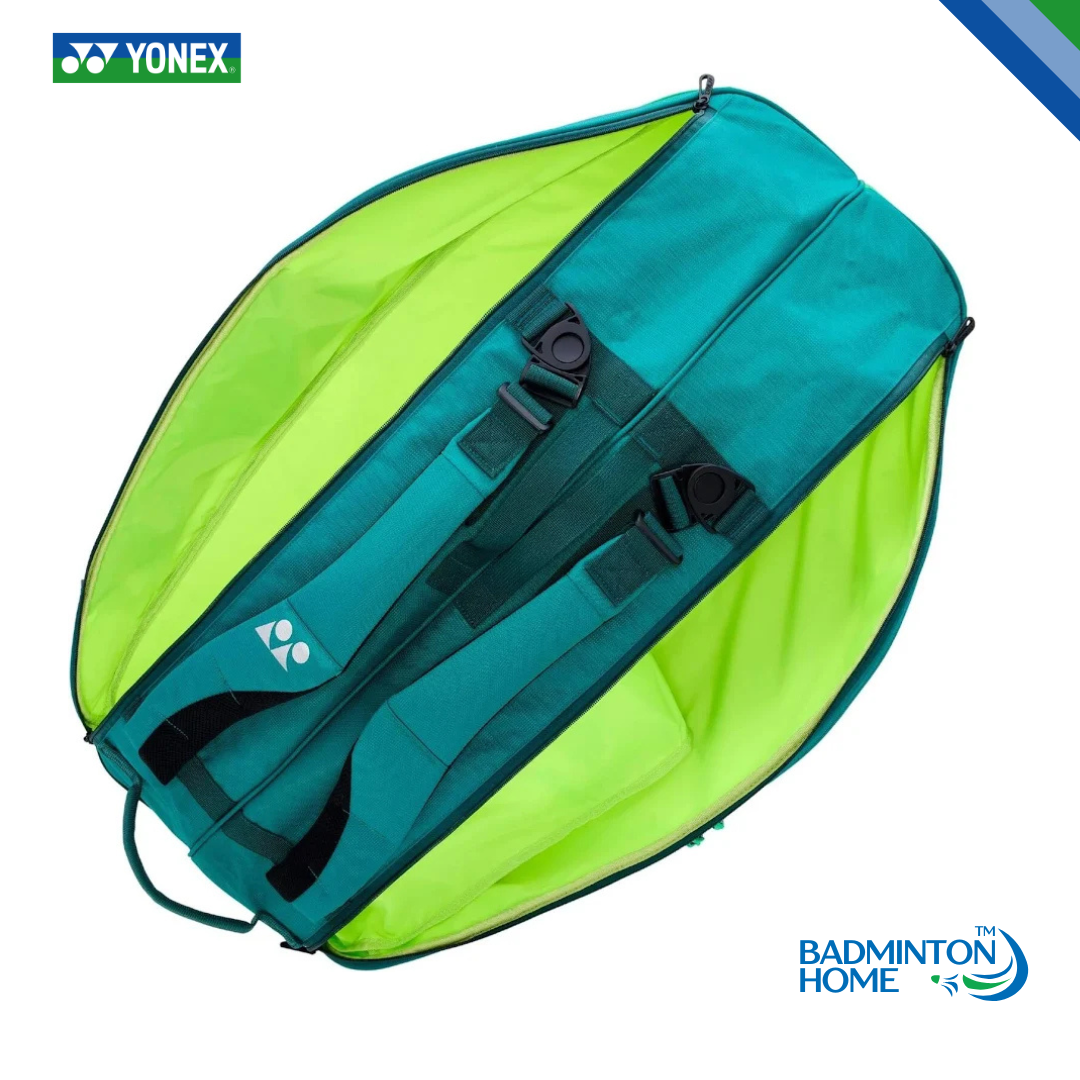 The bag features a bold and modern look with a teal green color combination, giving it a premium and sporty appearance that stands out on the court.